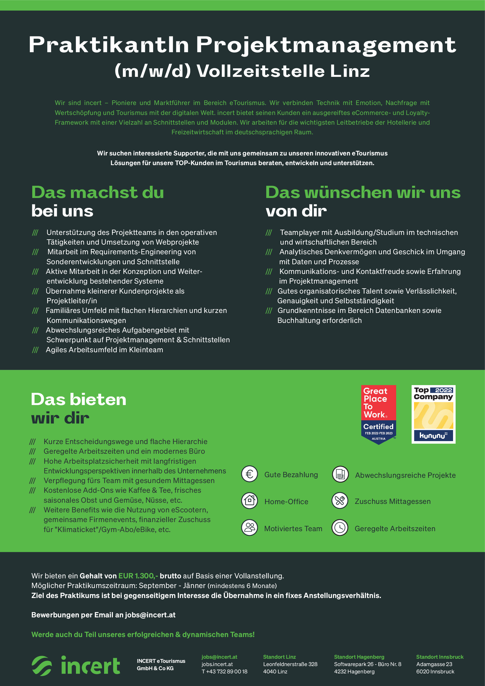 Alle Jobs von incert eTourismus GmbH & Co KG