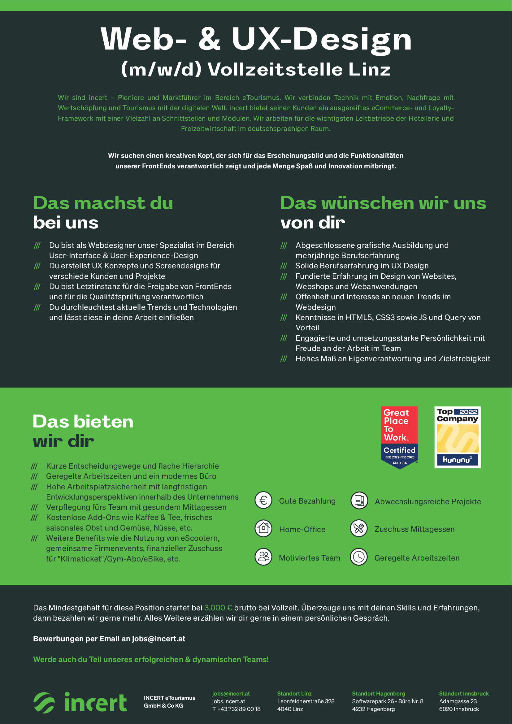 Alle Jobs von incert eTourismus GmbH & Co KG