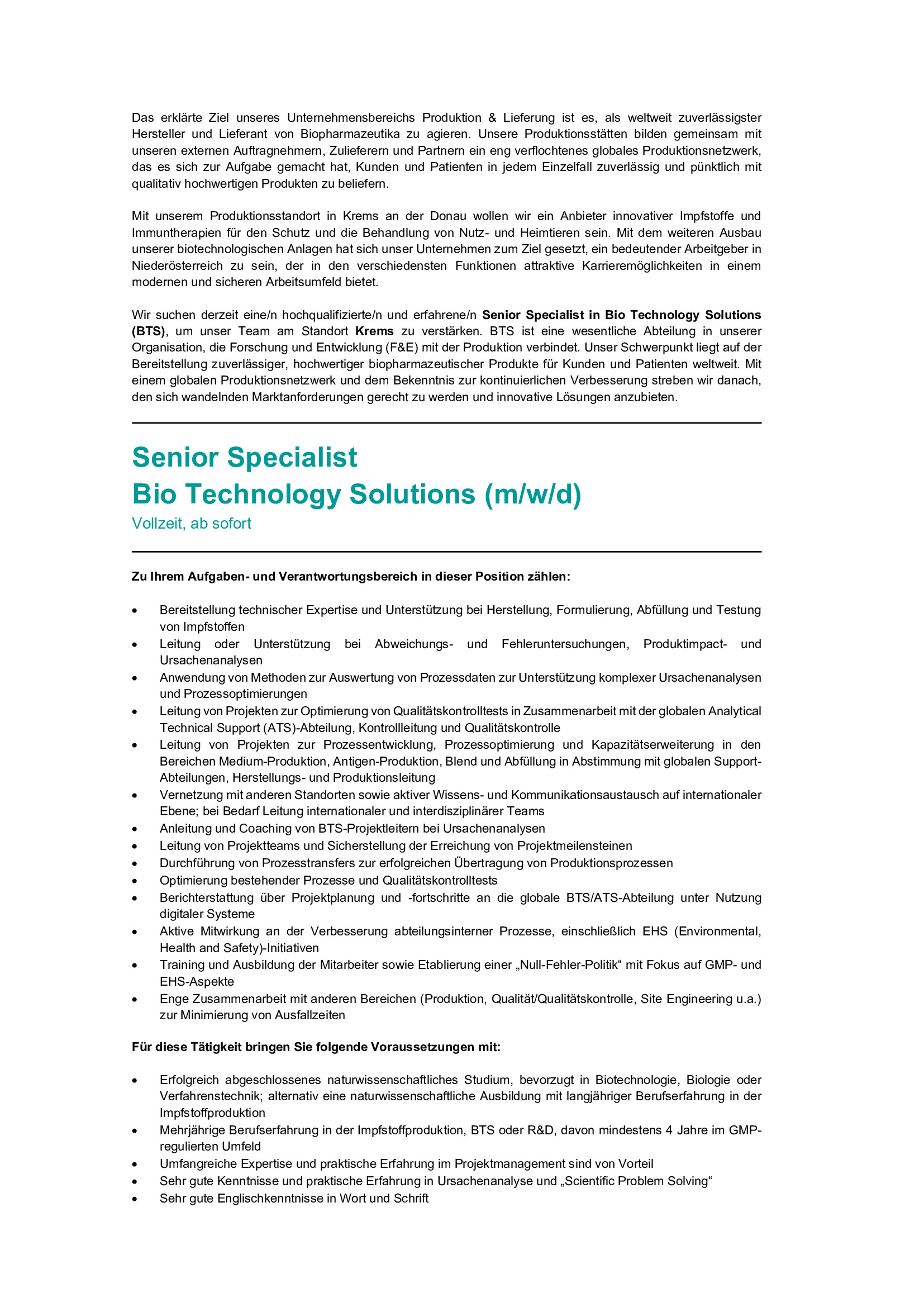 Senior Specialist Bio Technology Solutions (m/w/d) - [R358613]