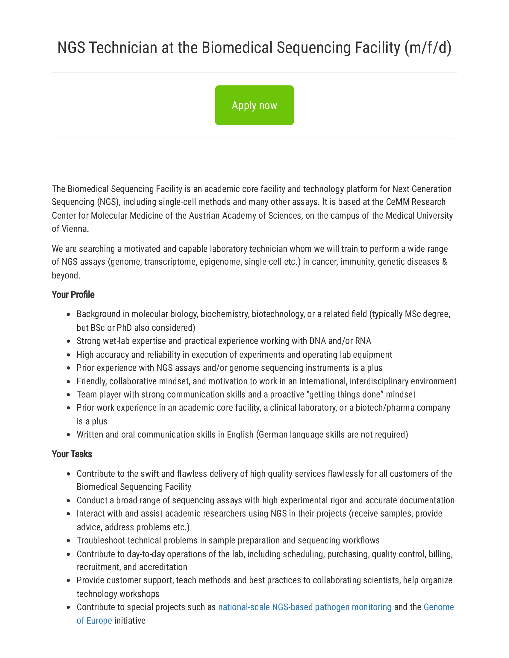 NGS Technician at the Biomedical Sequencing Facility (m/f/d)